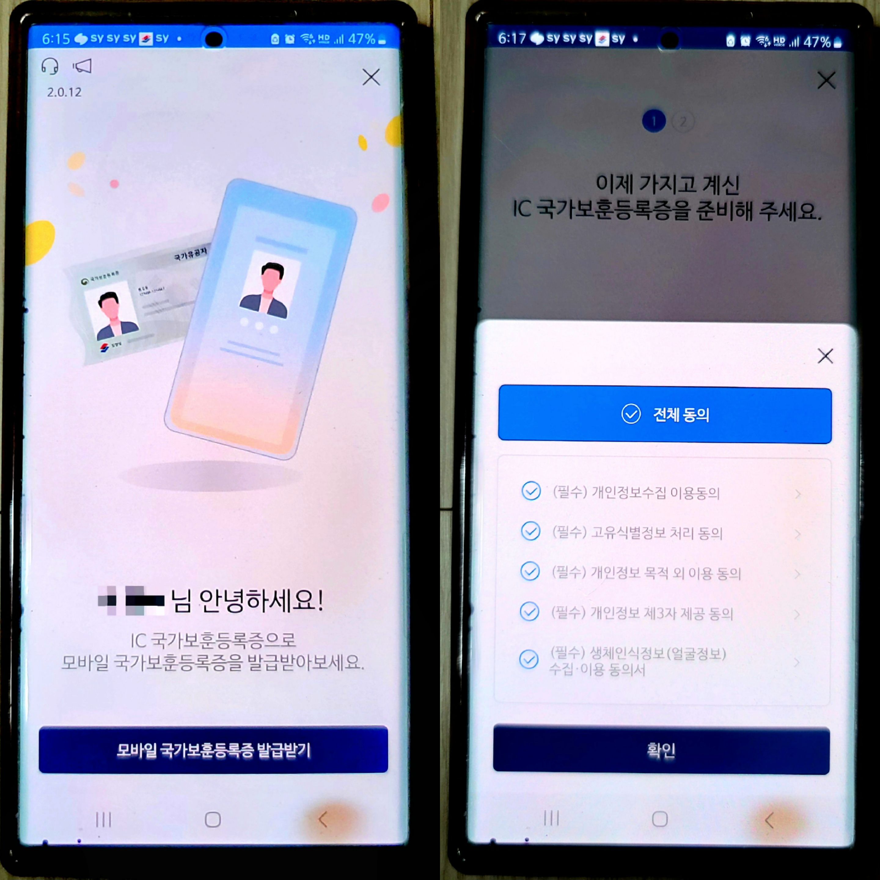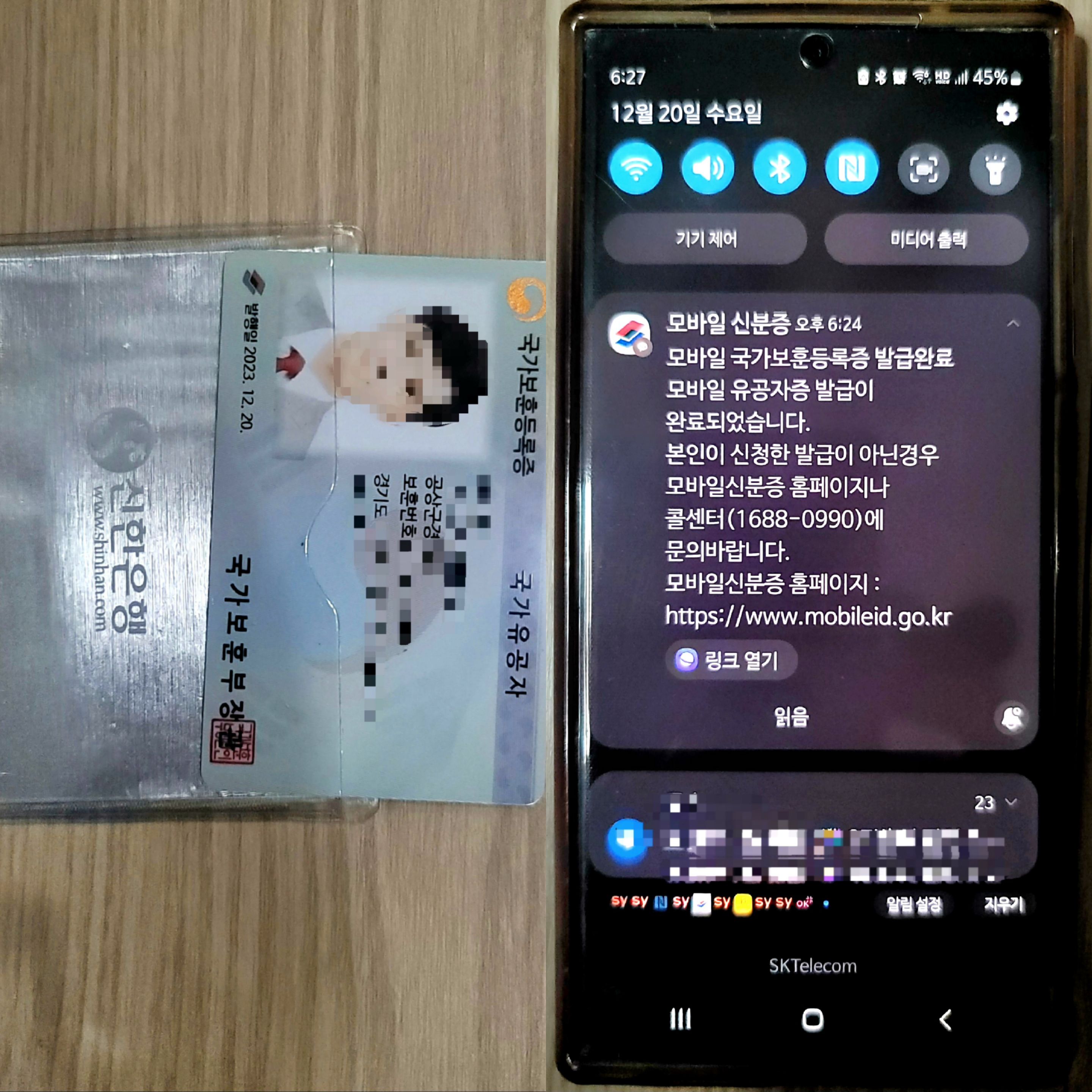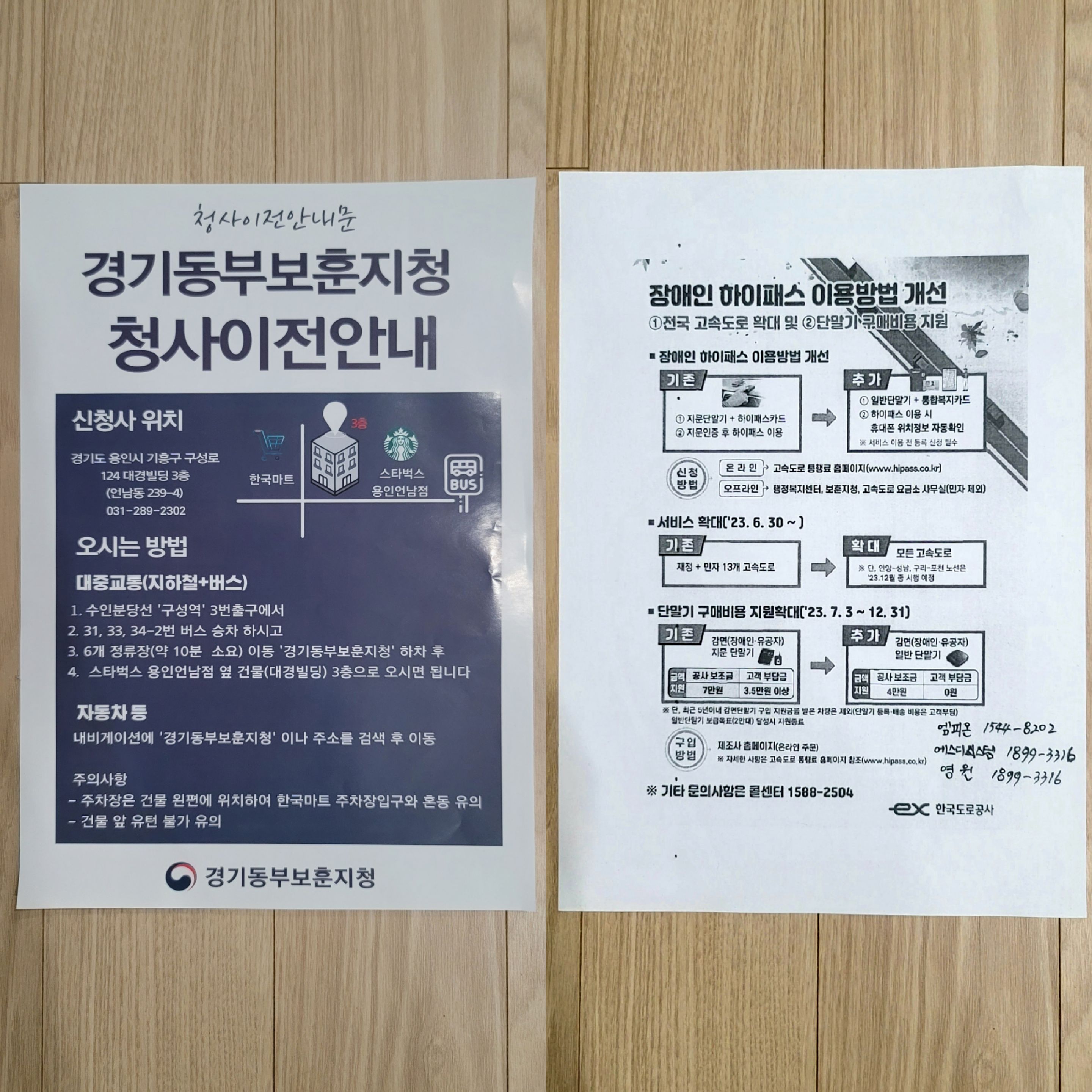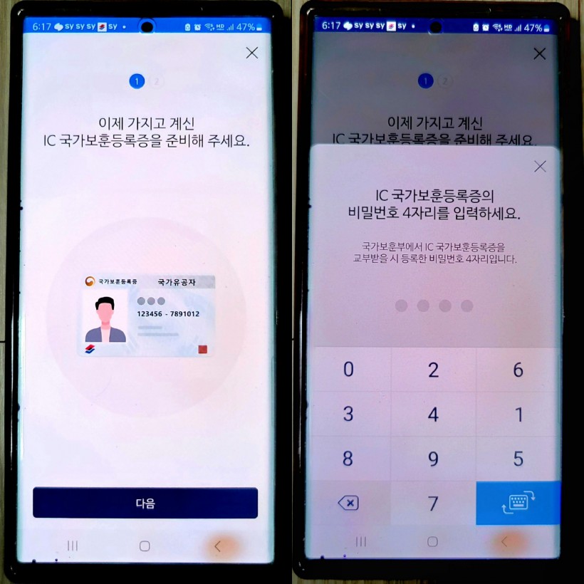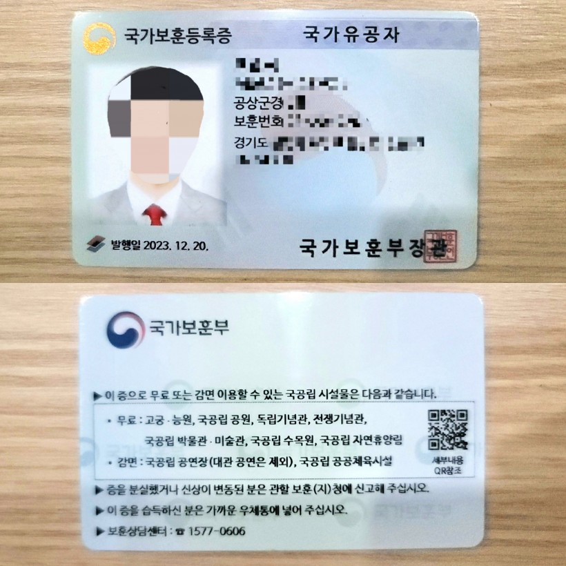 국민신문고 답변 및 전화 답변을 받은 후 지나는 길에 보훈지청에 들러 하이패스 지문인식기 유효기간 연장과 더불어 사진이 벗겨진 국가보훈등록증까지 신청서 작성 후 재발급 받았습니다.