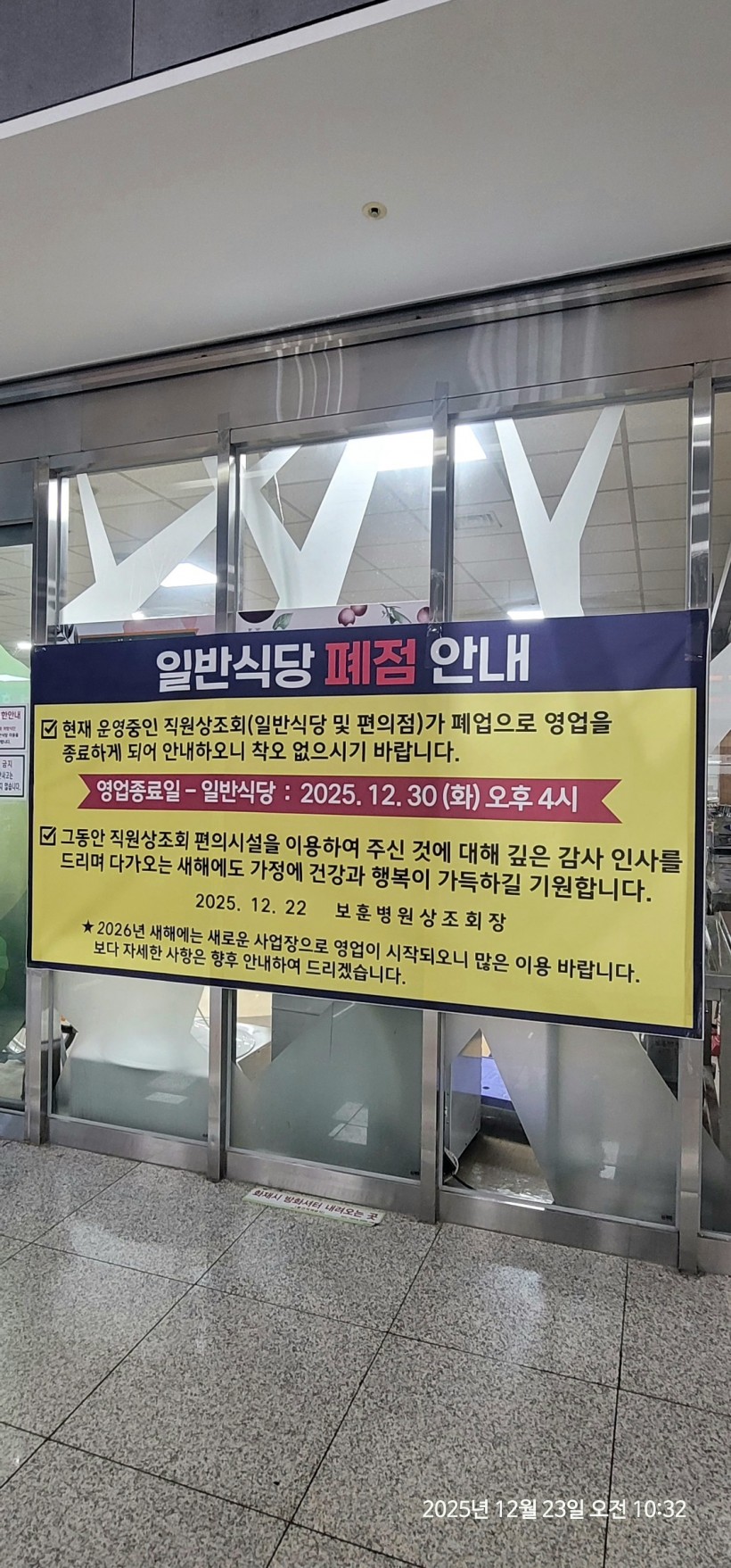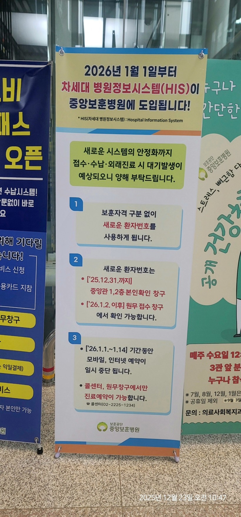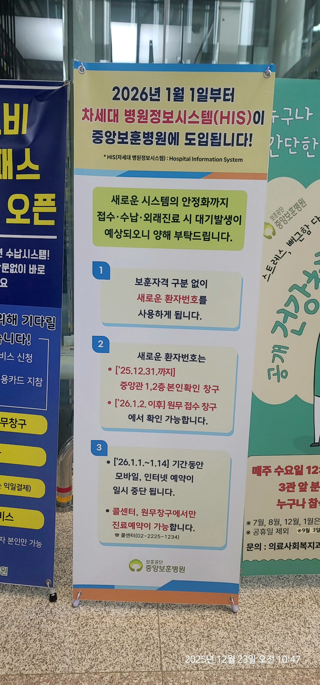 중앙보훈병원 지하1층 일반식당 및 편의점 폐점 예정 그리고 환자번호가 바뀝니다.