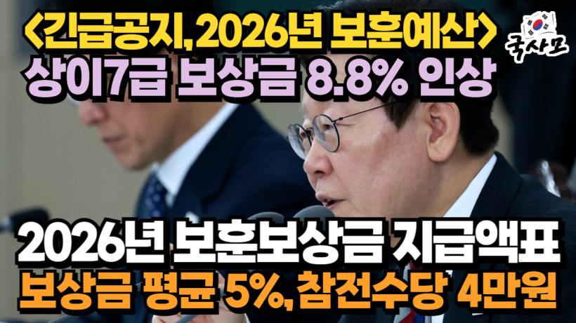 [긴급공지] 2026년 상이7급 보훈보상금 추가 3.8%(총 8.8% 인상) 수정공지