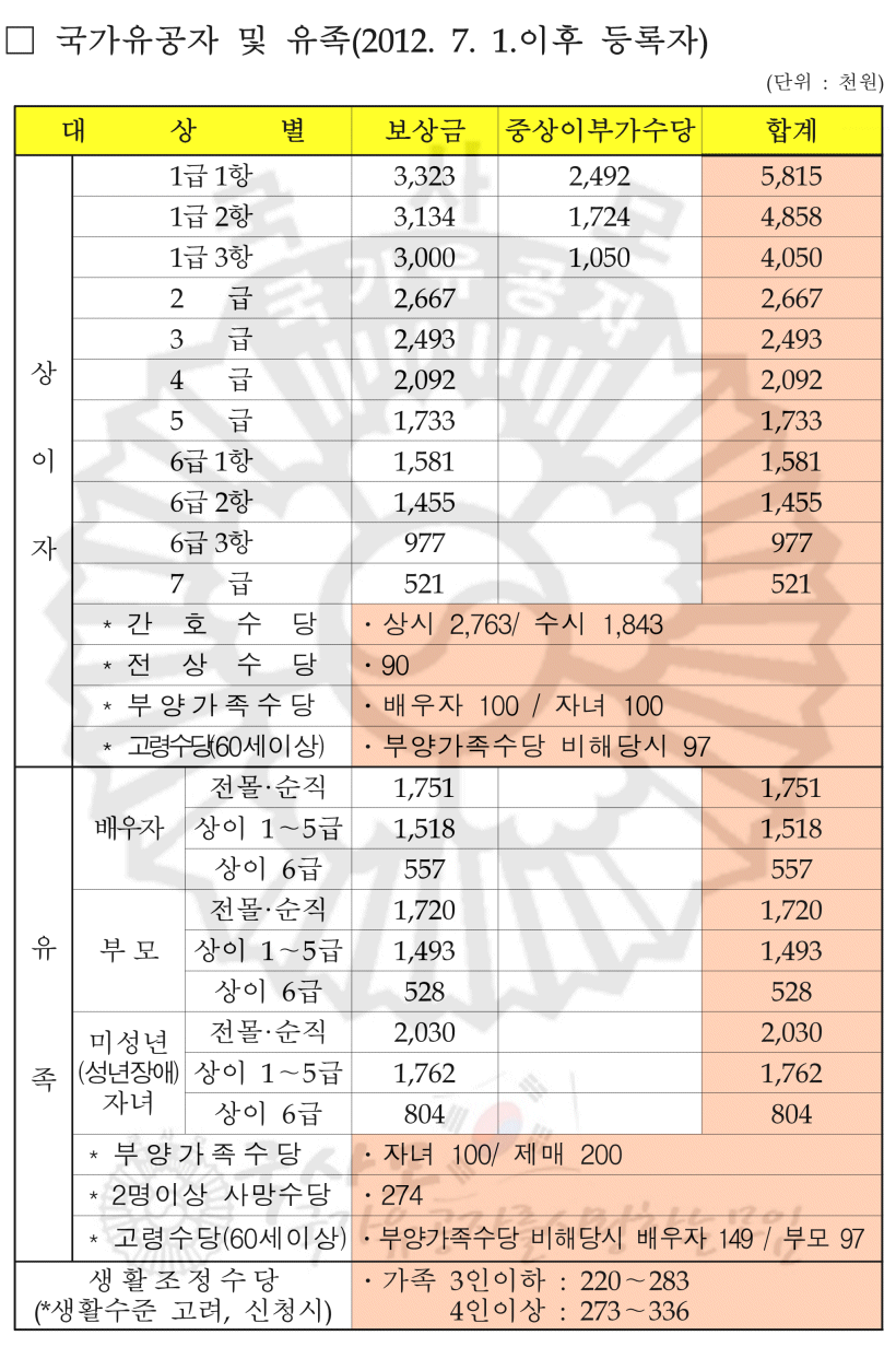 국가유공자 7급분들과 보훈대상자분들의 위상에 맞는 보상은 묘연하기 짝이 없네요