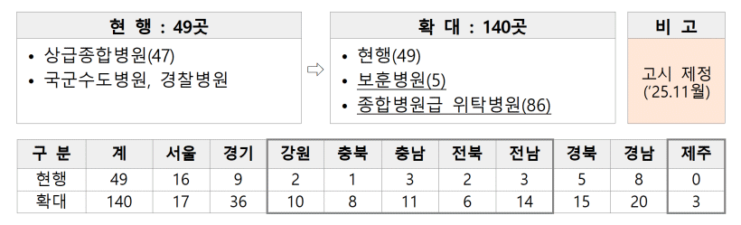 ○(발급기관 확대)장해진단서 발급‧활용이 보다 용이하도록 발급기관을 기존 49곳에서 140곳으로 확대(‘26.1.1. 시행)