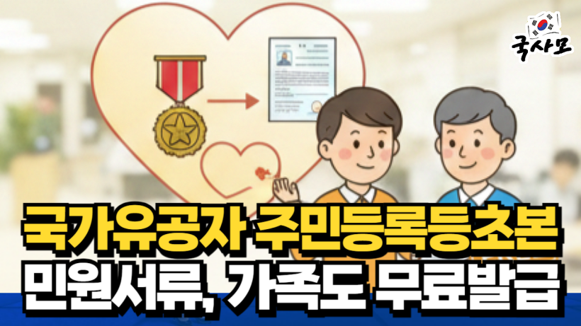 2026년 1월 1일부터 주민자치센터(동 주민센터)에서 주민등록초본을 포함한 각종 민원서류 발급 시, 기존에는 국가유공자 본인만 수수료 면제 혜택을 받을 수 있었으나, 국가유공자의 가족이 방문하여 발급받는 경우에도 수수료가 면제되도록 변경되었습니다.