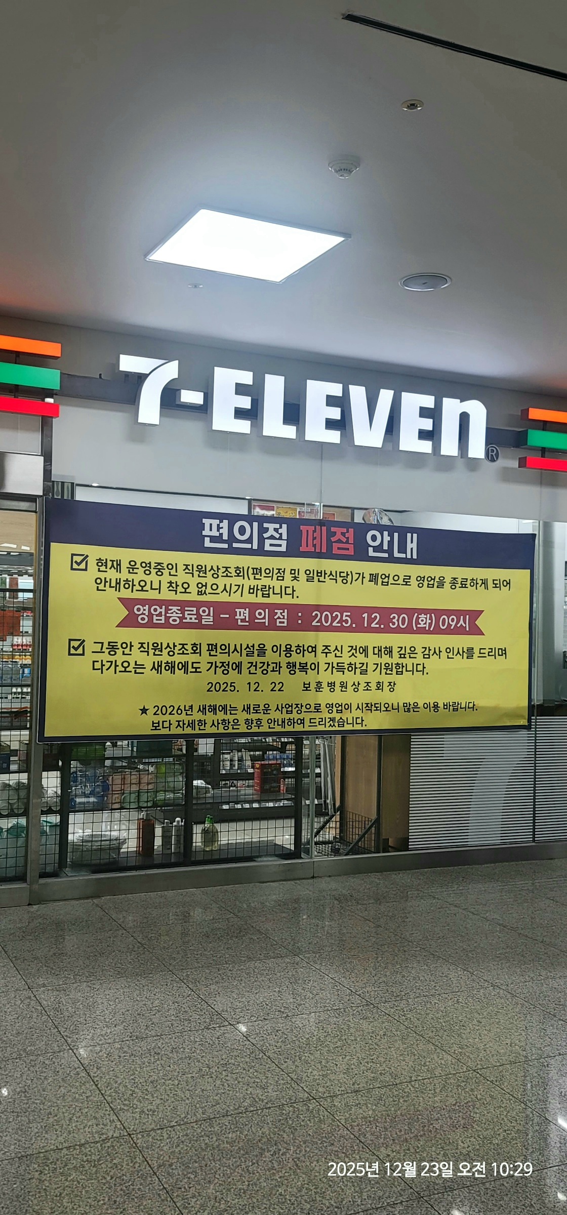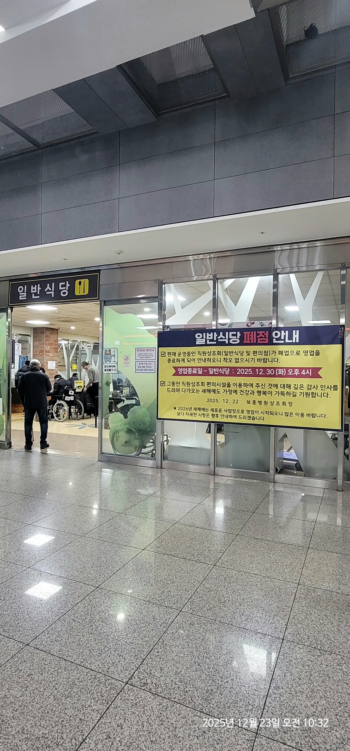 중앙보훈병원 지하1층 일반식당 및 편의점 폐점 예정 그리고 환자번호가 바뀝니다.