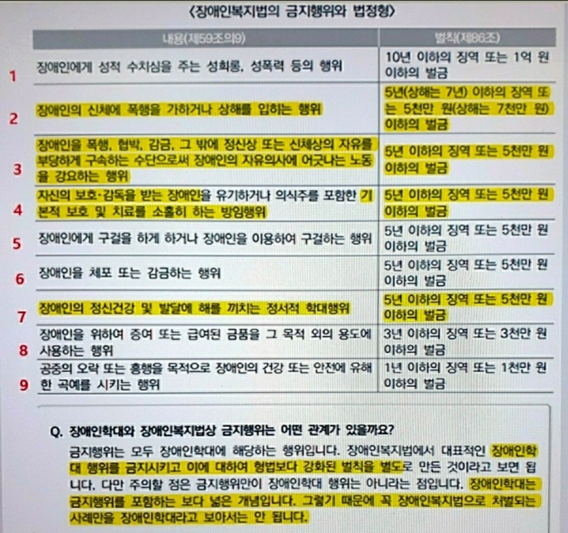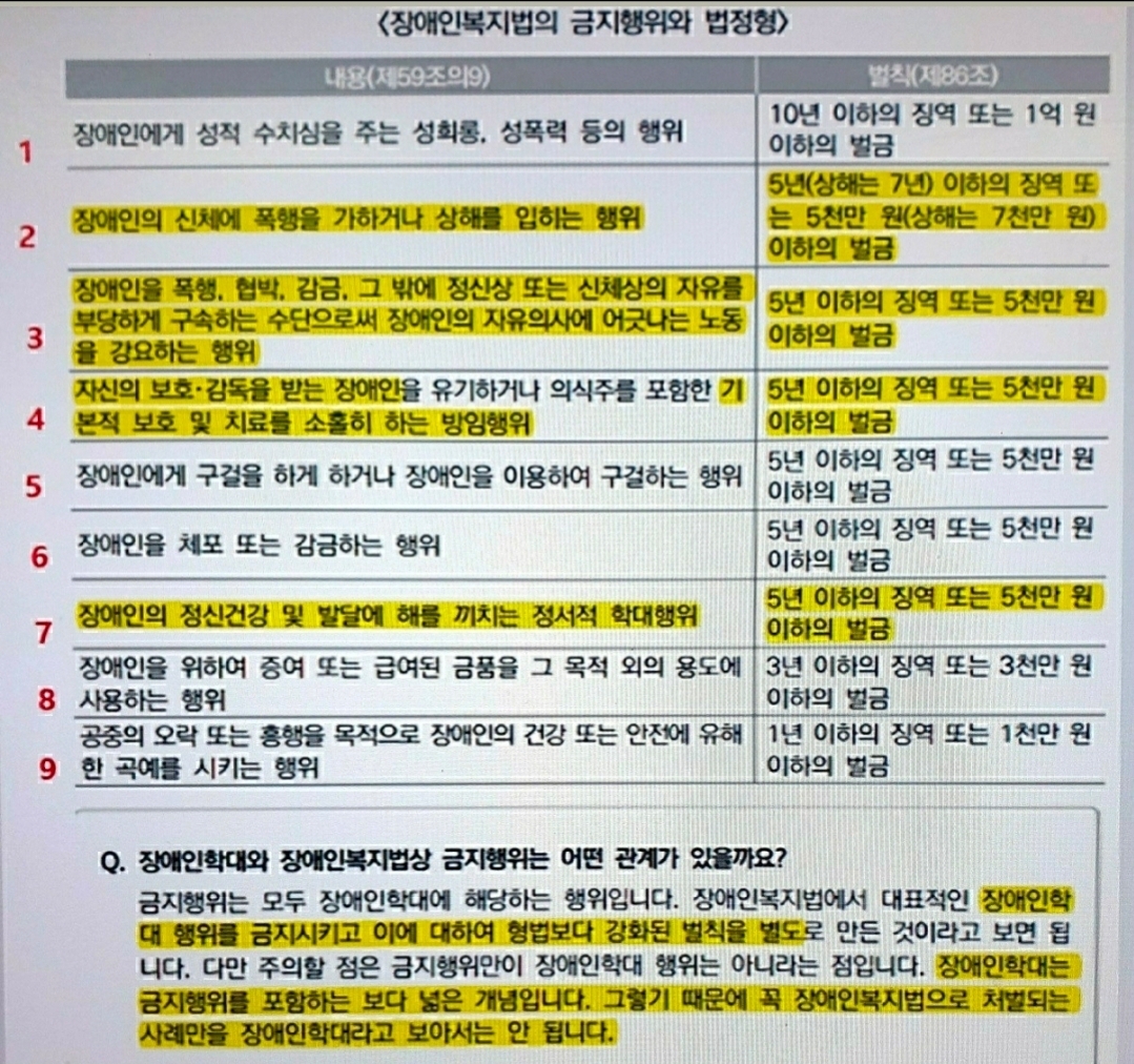 ★ 등록된 장애인만 보호받는 장애인복지법의 금지행위와 형사처벌 법정형