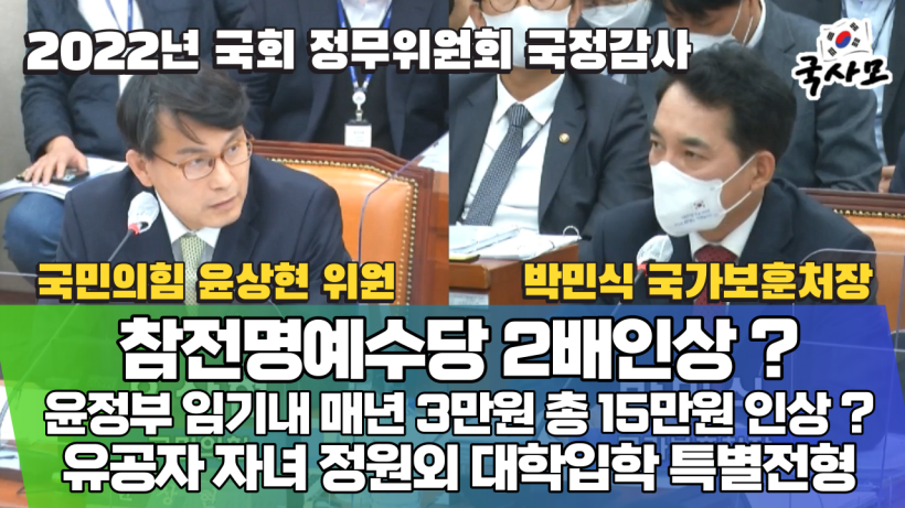 [국정감사] 정무위, 국민의힘 윤상현 위원 "참전명예수당 2배 인상???"