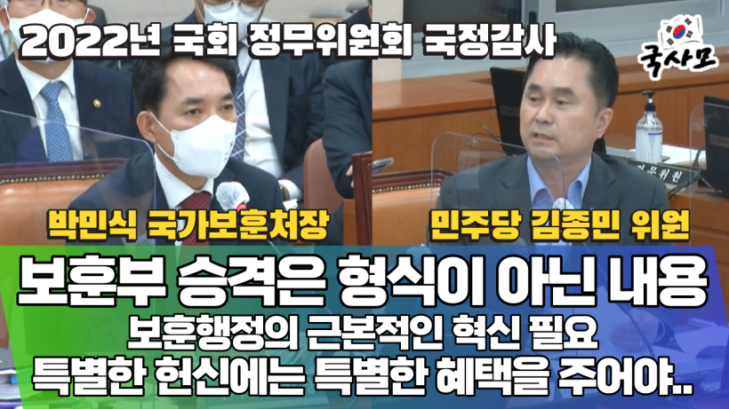 [국정감사] 정무위, 민주당 김종민 위원 "보훈부 승격은 형식이 아니고 내용"
