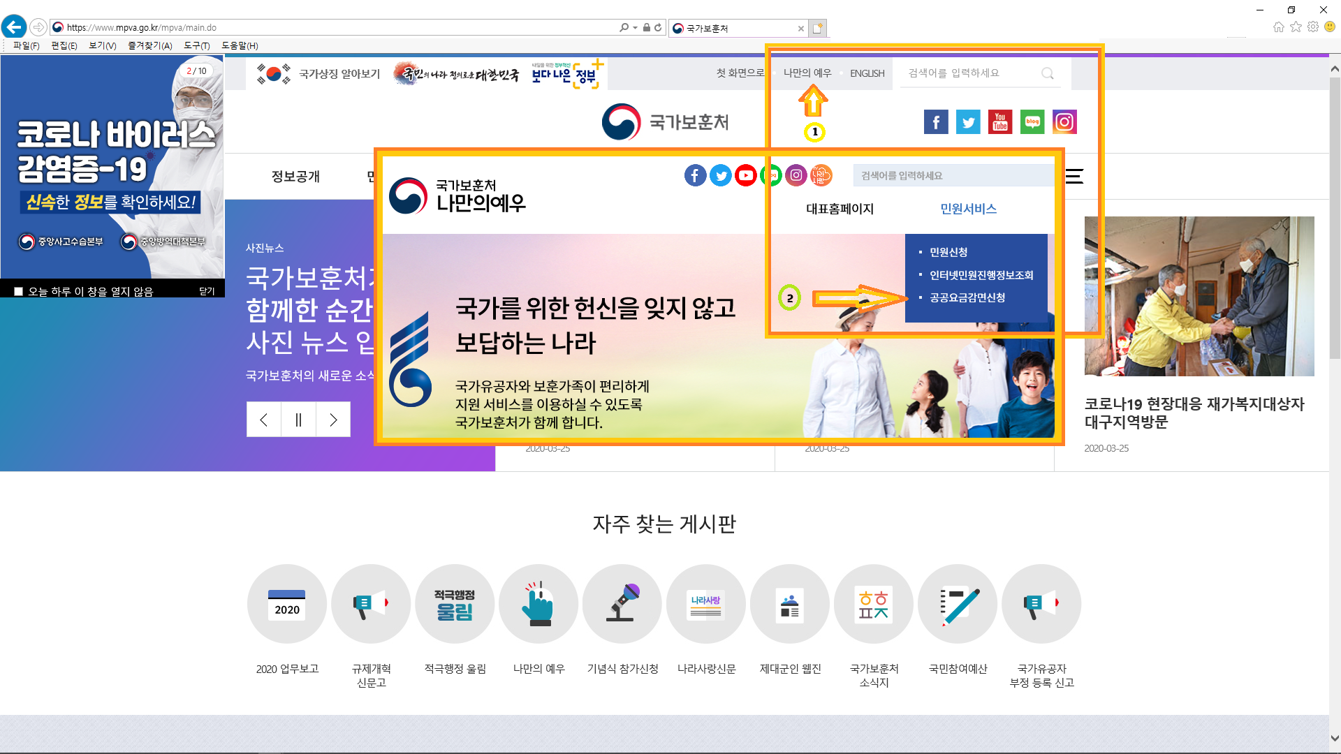 ② 보훈처 홈페이지 ‘나만의 예우’통해 온라인 신청