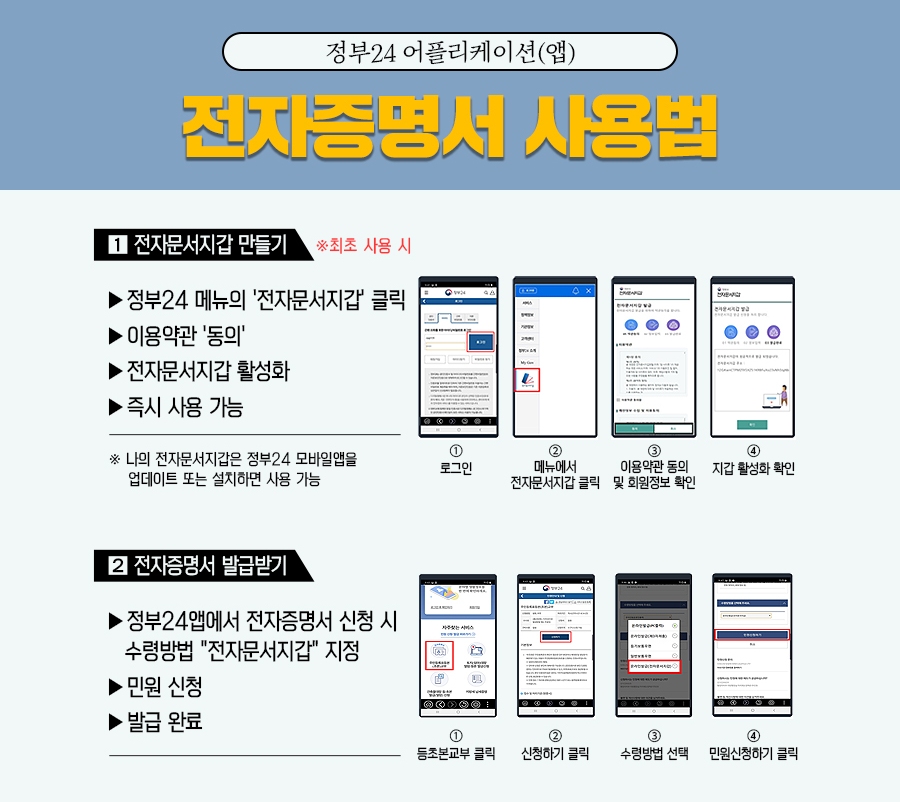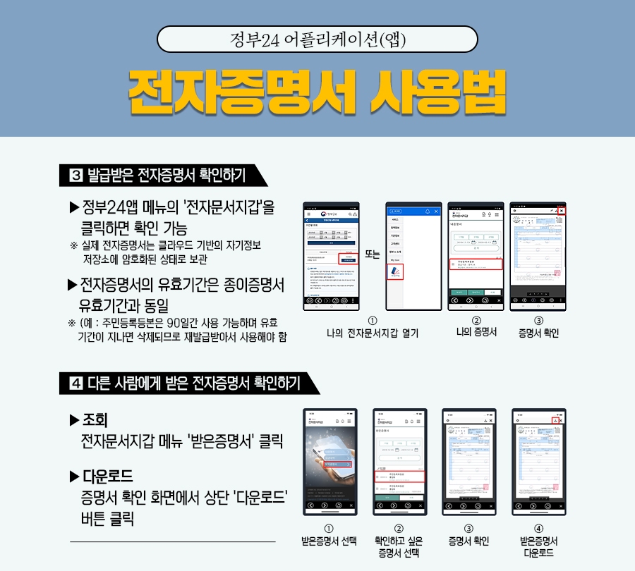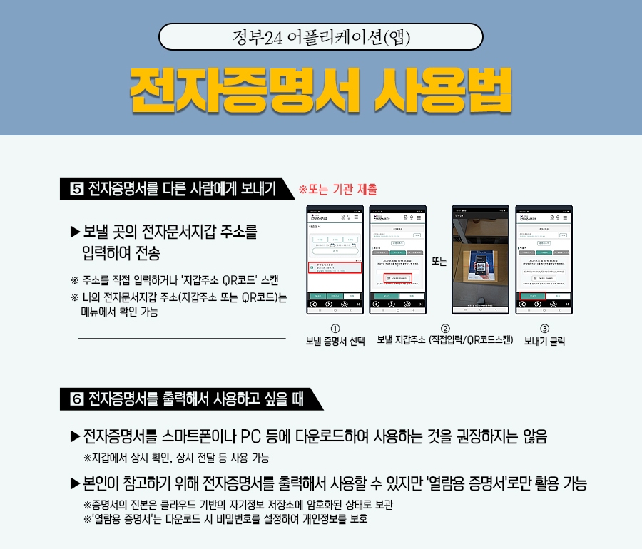 정부24앱 전자문서지갑에 발급받은 전자 주민등록등본도 제시 가능 -
