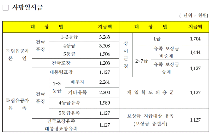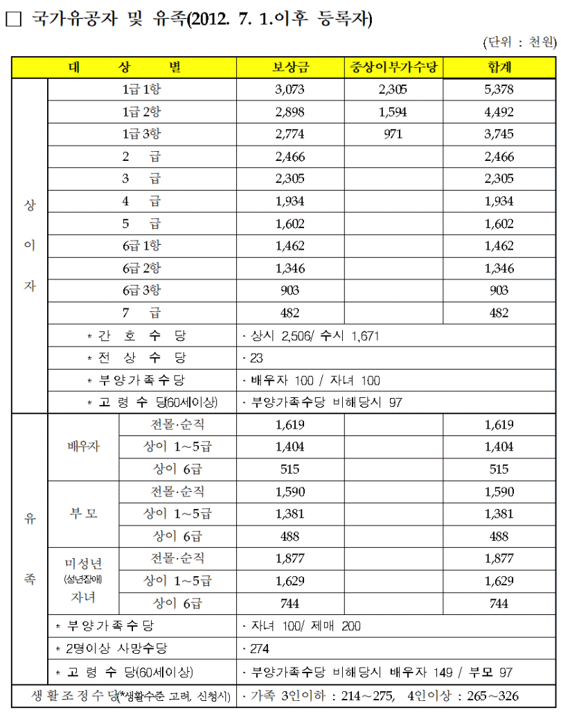 축하 드립니다. 보상금 접수일부터 지급되고. 국가유공자 증서 발급.