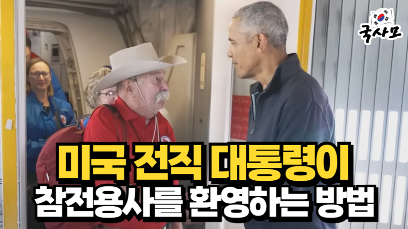 재향군인의 날인 11일(현지시간) 오바마 전 대통령은 자신이 한국전쟁과 베트남전쟁 등에 참전한 퇴역군인들과 그 가족이 탄 여객기에서 기내 마이크를 잡고 인사말을 하는 영상을 엑스(X·옛 트위터)에 올렸다.